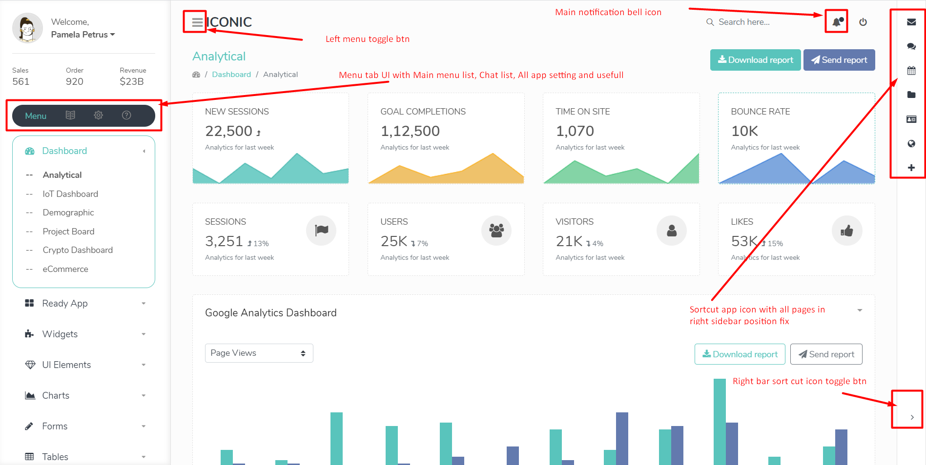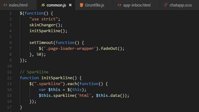 Iconic admin.js is the mail javascript file having all the js code. File is located in assets/js/ folder. This file code is also well formatted and section in different respective function names.